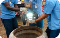 Inspeção por filmagem de dutos de água pluvial, esgoto, com ou sem a utilização de robôs.